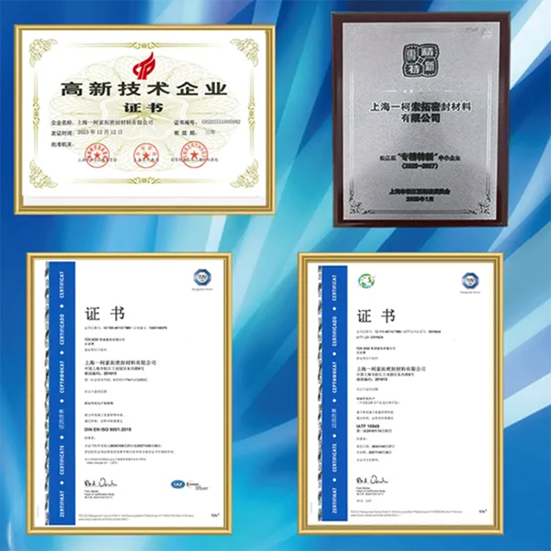 上海一柯索拓密封材料有限公司,作為高新技術(shù)企業(yè)和專(zhuān)精特新認證單位,長(cháng)期致力于各行業(yè)用100%無(wú)石棉環(huán)保密封墊片和耐高溫隔熱產(chǎn)品的生產(chǎn)與銷(xiāo)售。公司通過(guò)ISO9001、IATF16949、ISO14001、ISO45001體系認證,并取得GC特種設備制造許可證??蓞f(xié)助客戶(hù)進(jìn)行密封失效分析,如FUJI測試和有限元分析,密封墊的設計與選型。